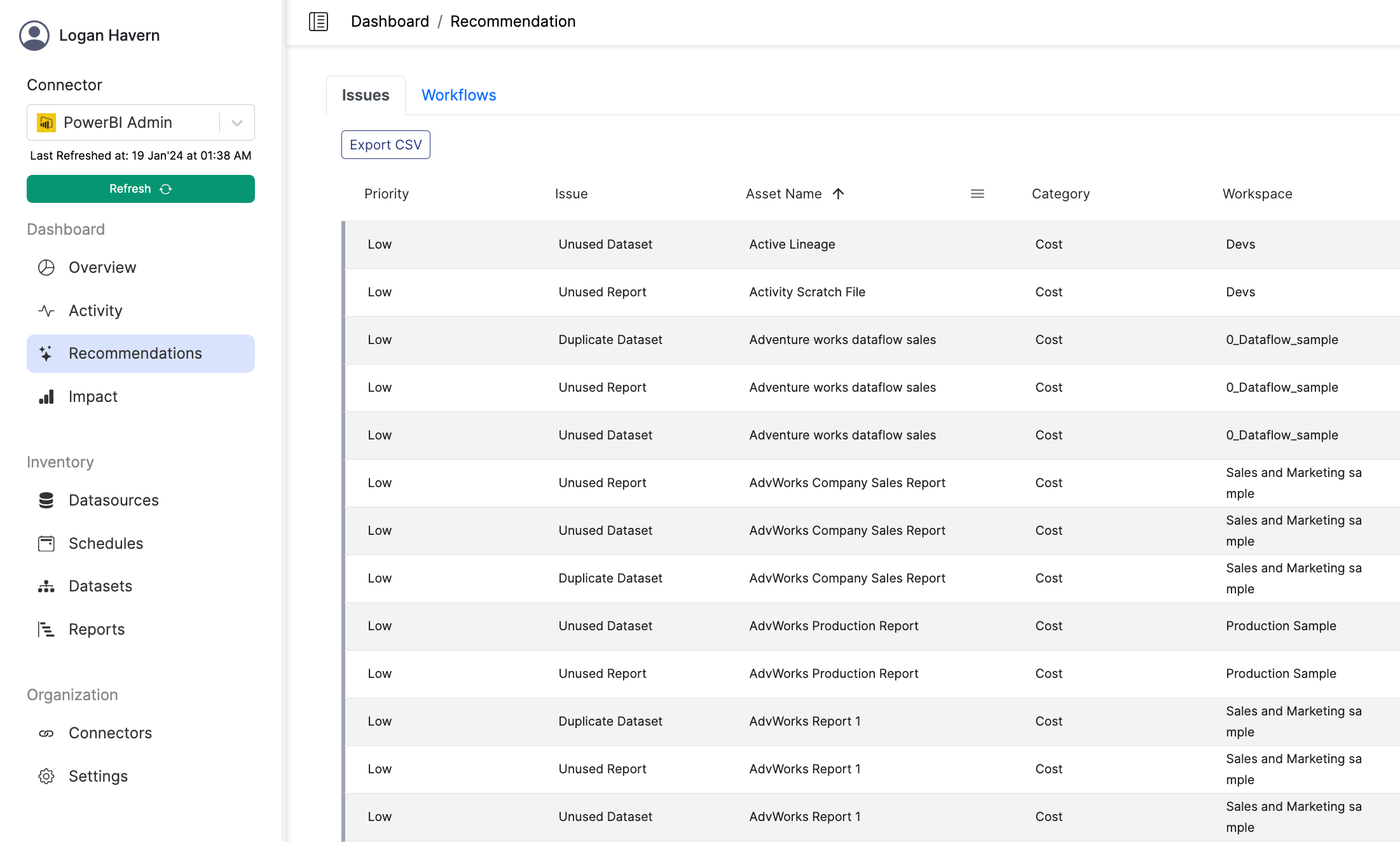 Secondly, it identifies and eliminates redundant or unused reports, dashboards, and datasets. This asset reduction is crucial in streamlining the BI infrastructure, thereby reducing unnecessary cloud computing costs and optimizing overall resource utilization.